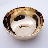 Diese Klangschale ist eine Handarbeit aus Bengalen. Sie ist neu und wurde gezielt nach altem 7-Metalle-Rezept in Handarbeit gezogen und gehämmert.