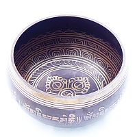 Die Klangschale wurde in Nepal neu erworben. Bei diesem Typ nepalesischer Klangschalen wird der Grundkörper gegossen, an der Drehscheibe gedreht und danach von Künstlern mit Hilfe von Lötarbeiten, Gravuren oder Färbungen kunstvoll verschönert. In Nepal kommen unterschiedliche Legierungen zum Einsatz. Den Hauptbestandteil aller Legierungen bildet immer Kupfer.