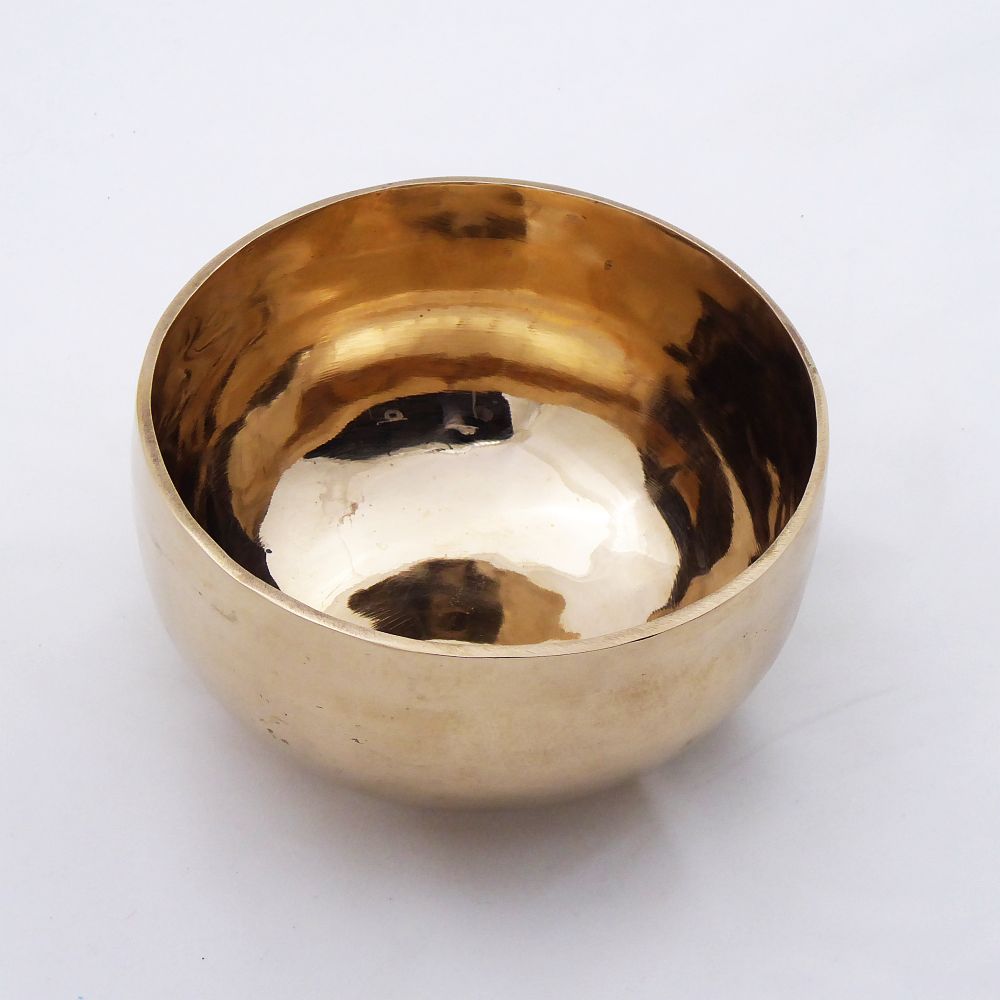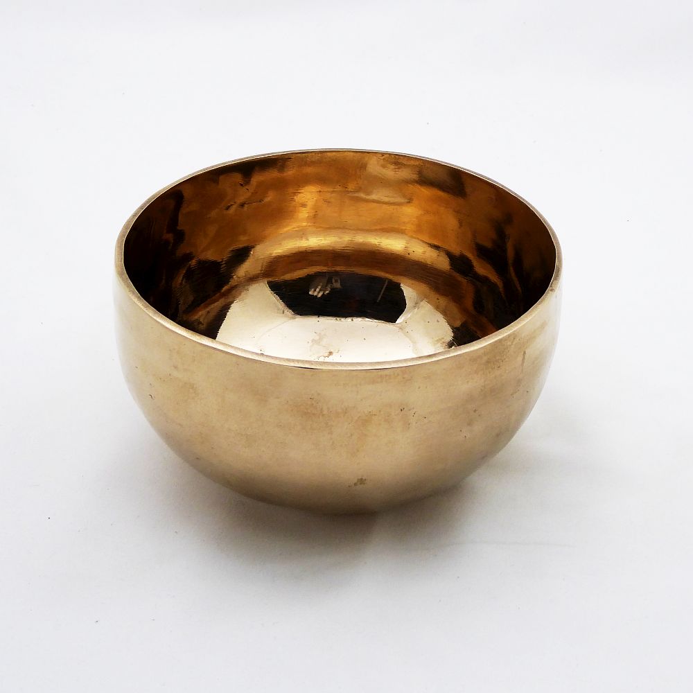 Diese Klangschale ist eine Handarbeit aus Bengalen. Sie ist neu und wurde gezielt nach altem 7-Metalle-Rezept in Handarbeit gezogen und gehämmert.