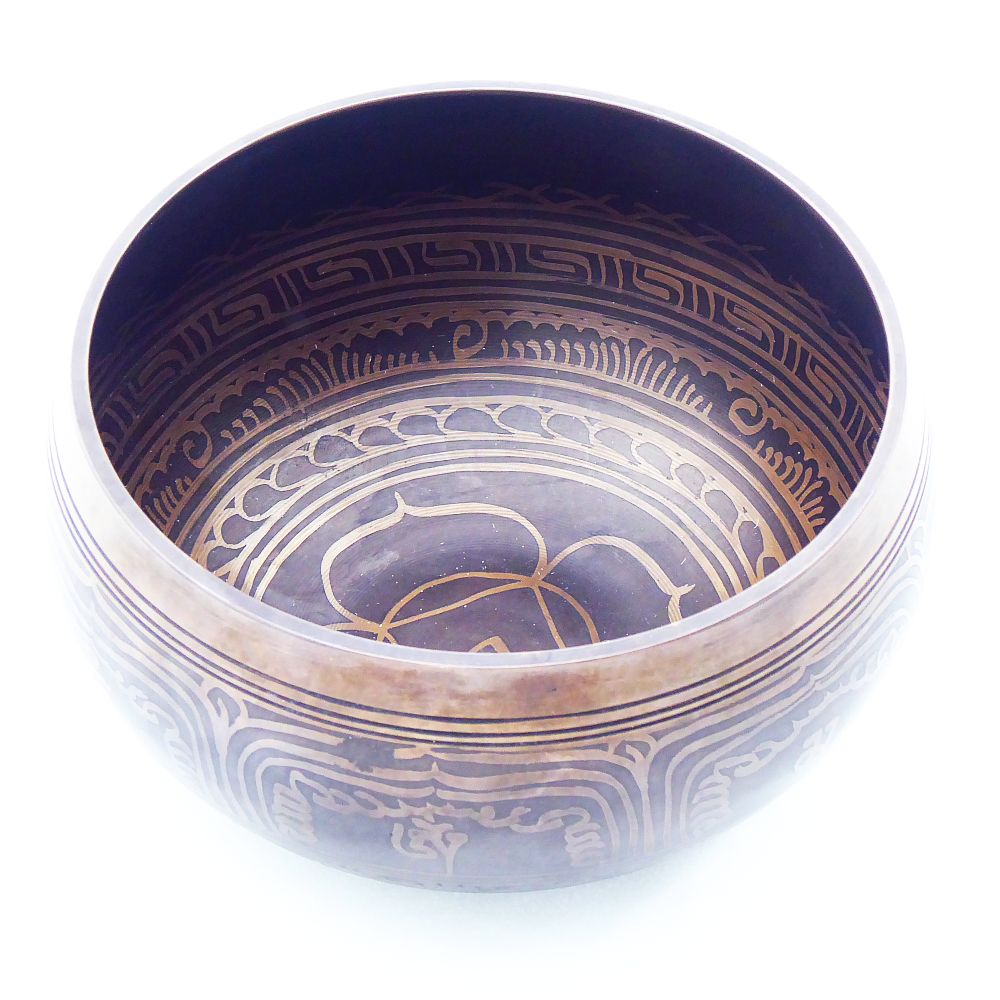 Diese Klangschale hat energetische Schwerpunkte: 1.Chakra (Wurzelchakra) und 7.Chakra (Scheitelchakra).